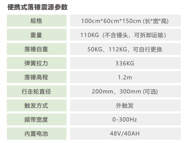 落錘式地震勘探震源采用電動液壓或人工方式提升重錘,通過重力和彈簧伸縮向地面加速沖擊,激發(fā)能量大、激發(fā)頻率可調(diào)節(jié)、重量較輕、拆卸運輸方便,為地面地震勘探提供了理想的震源。